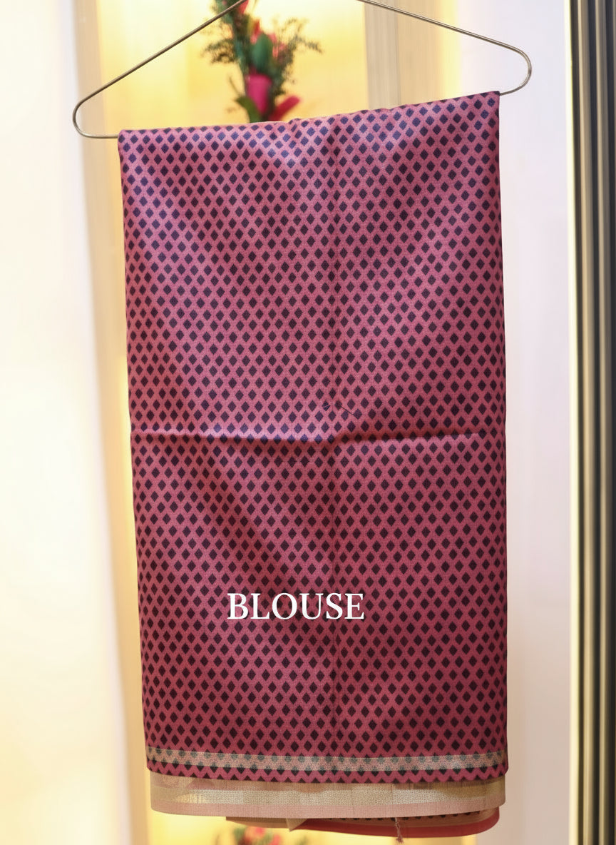 PATTERN :- ALL OVER PRINTED WITH SAME COLOR BLOUSEWITH DOTS
