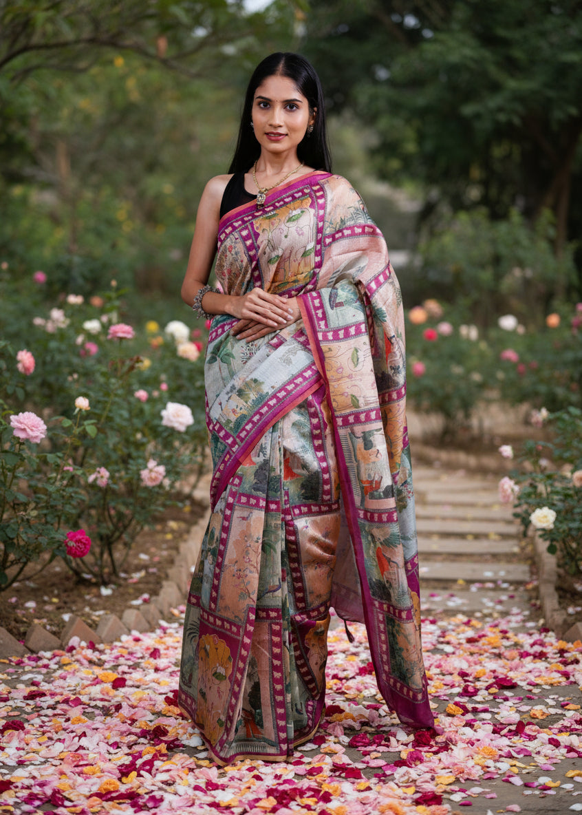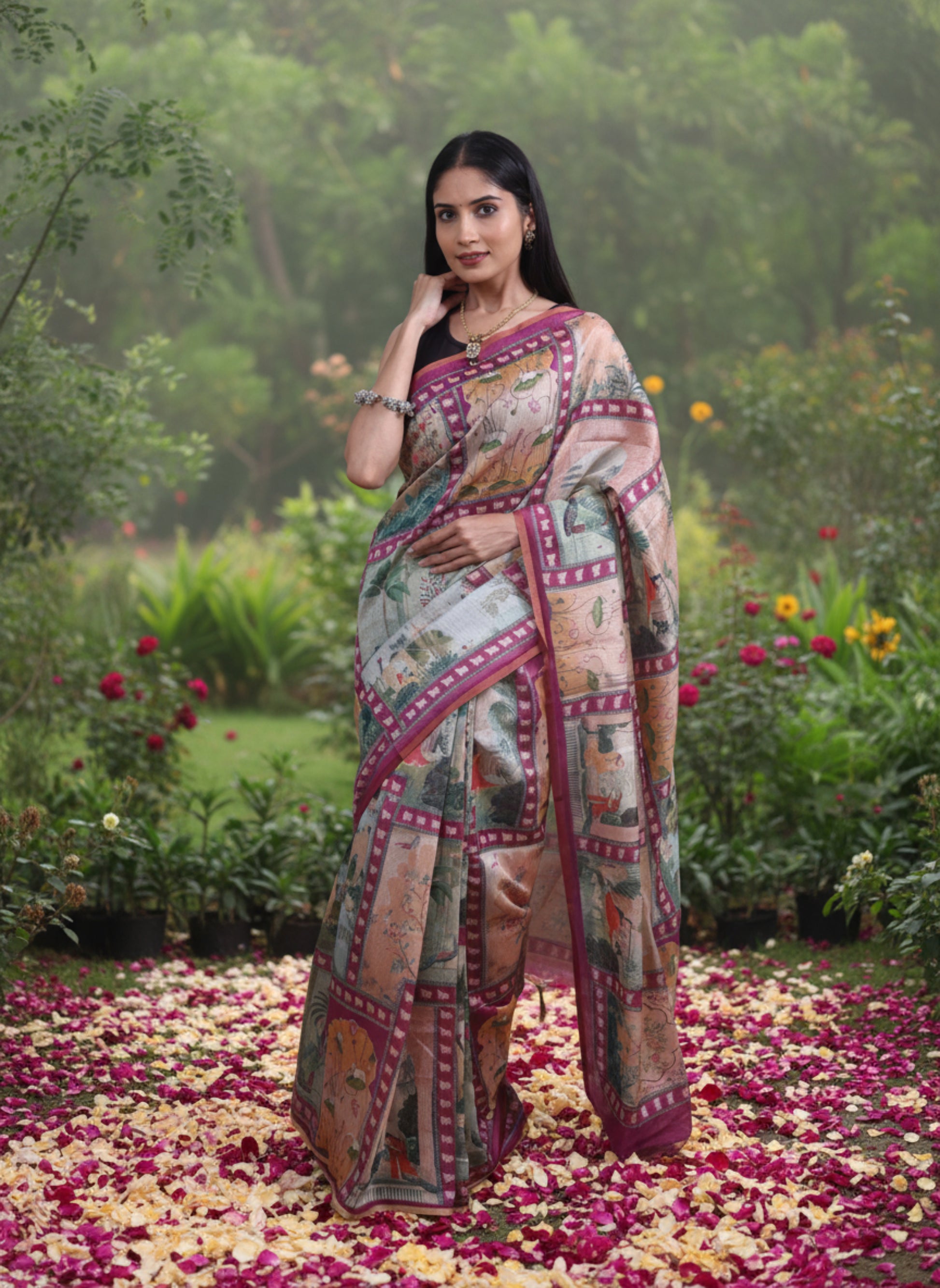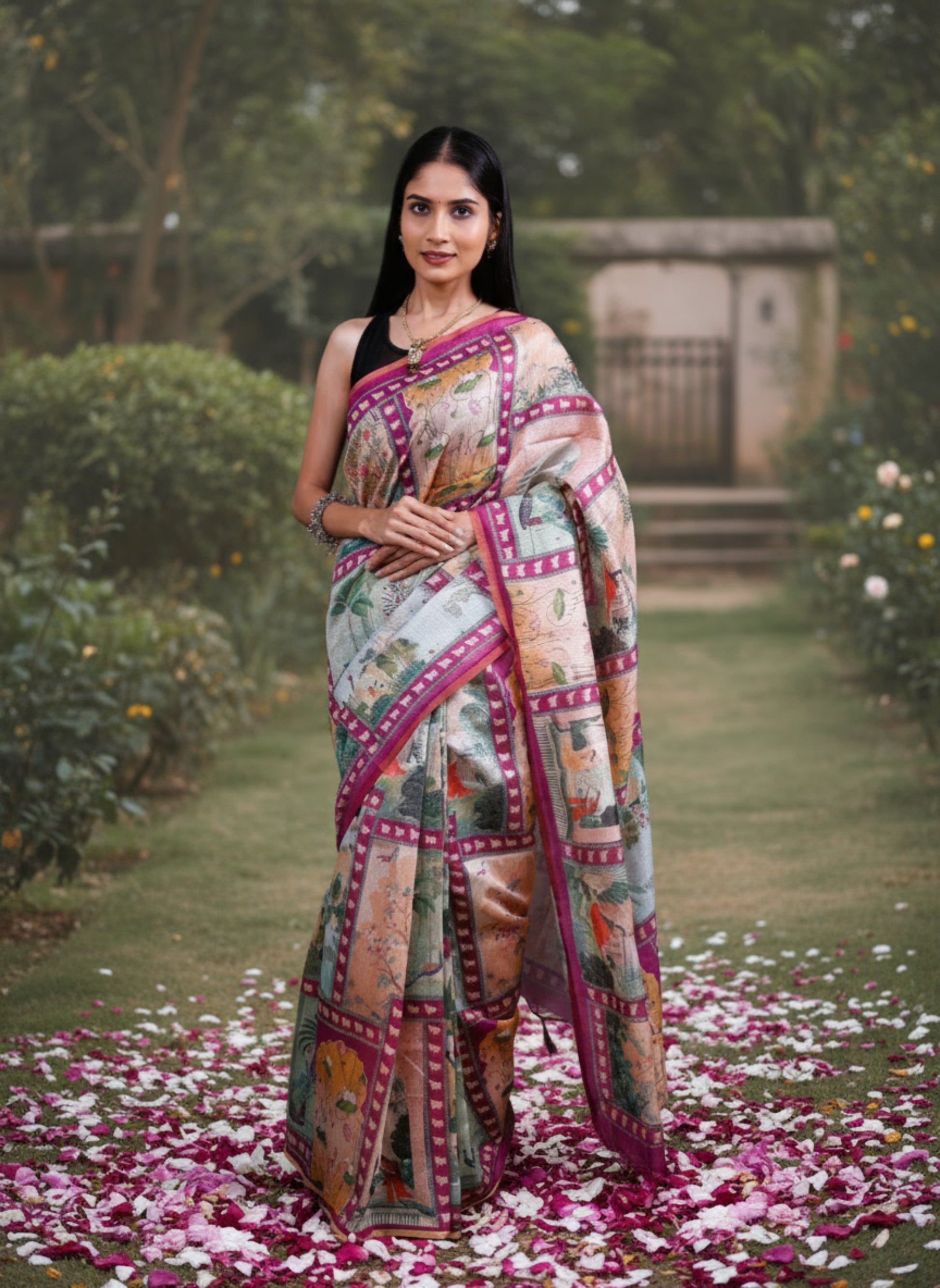 PATTERN :- ALL OVER PRINTED WITH SAME COLOR PLAIN BLOUSE